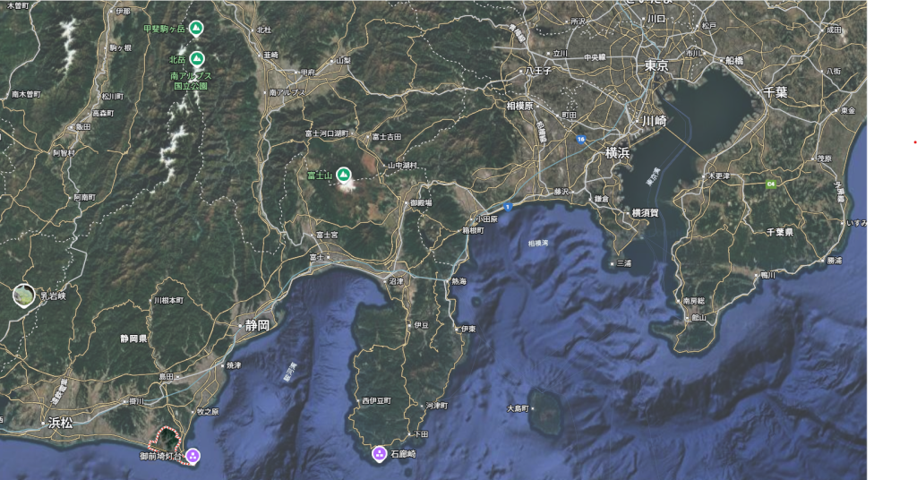 御前崎まで行ってきました。位置的にはこの辺。町田からはちょうど200㎞くらいです。